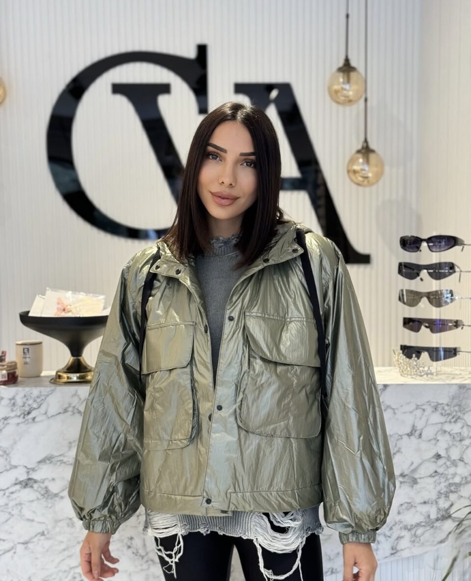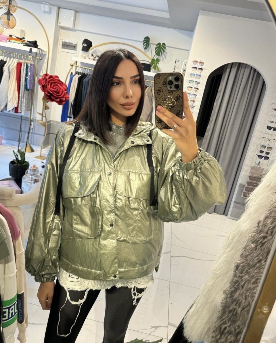 Kapüşonlu Metalik Yağmurluk Mont – Haki