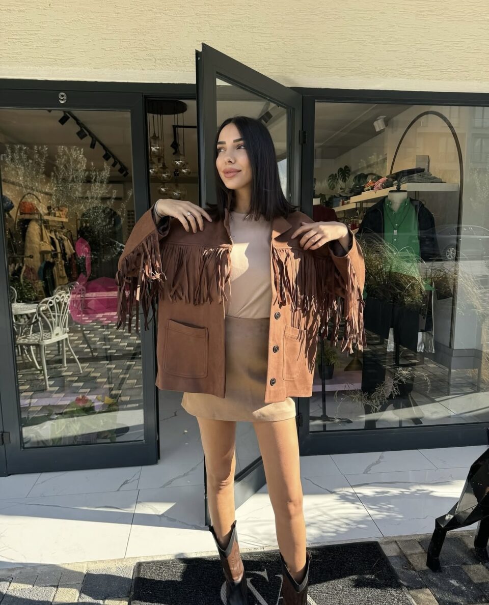 Western Tarz Kahverengi Süet Püskül Ceket