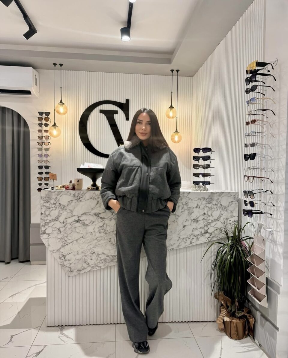 Yakası Kürk Detay Ceketli Pantolon Füme Renk Takım