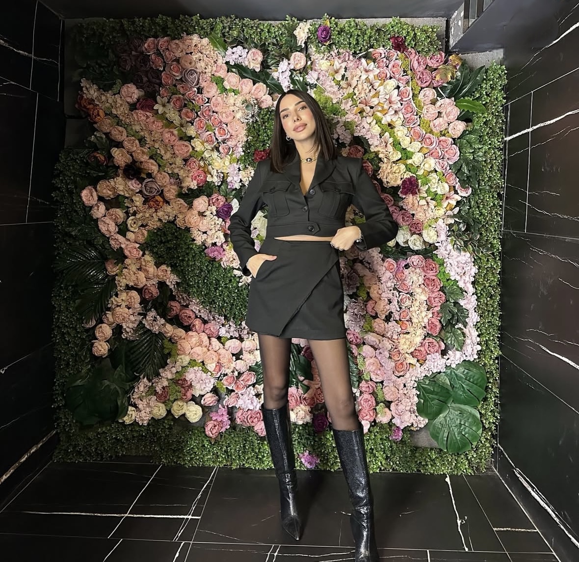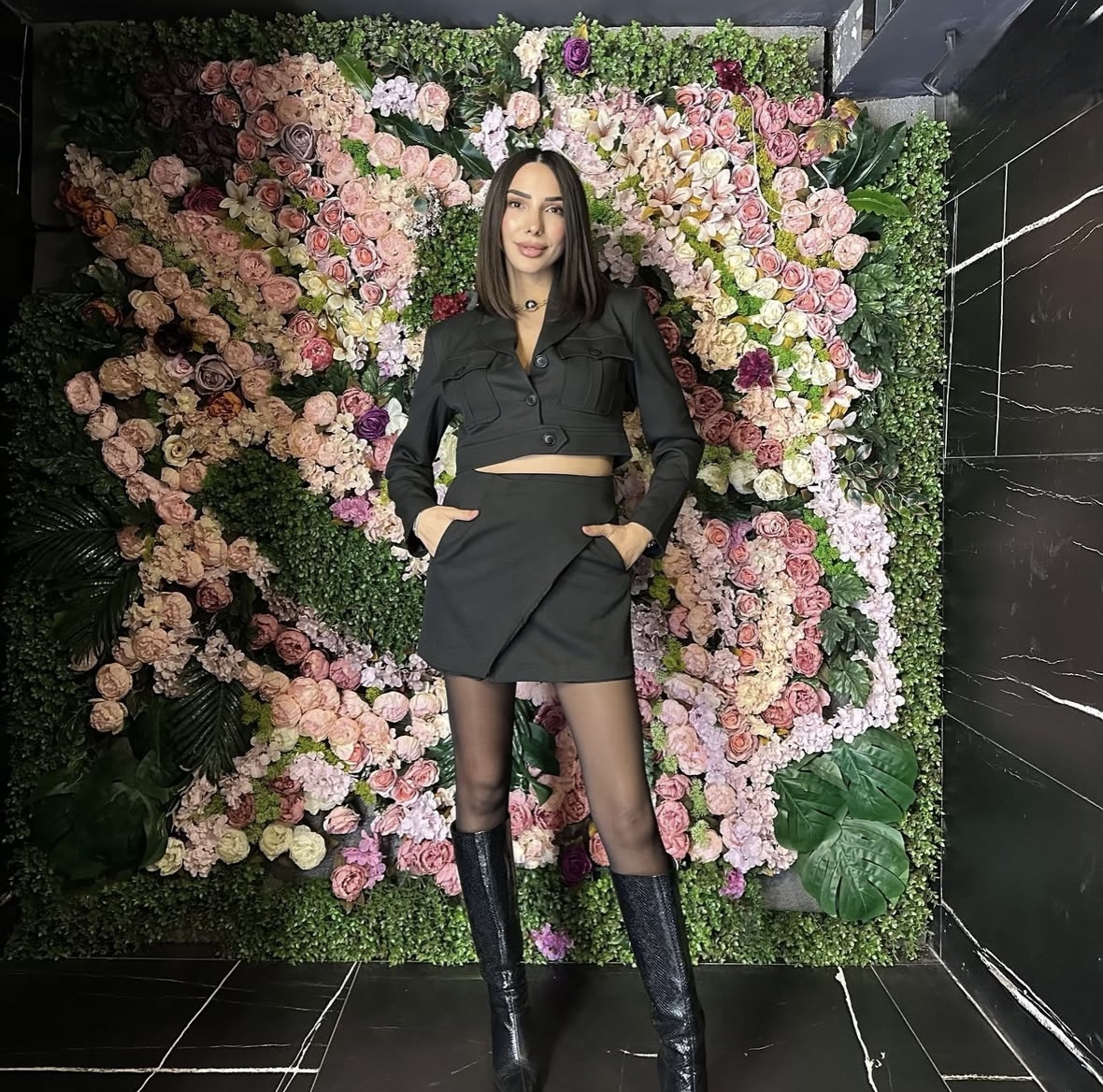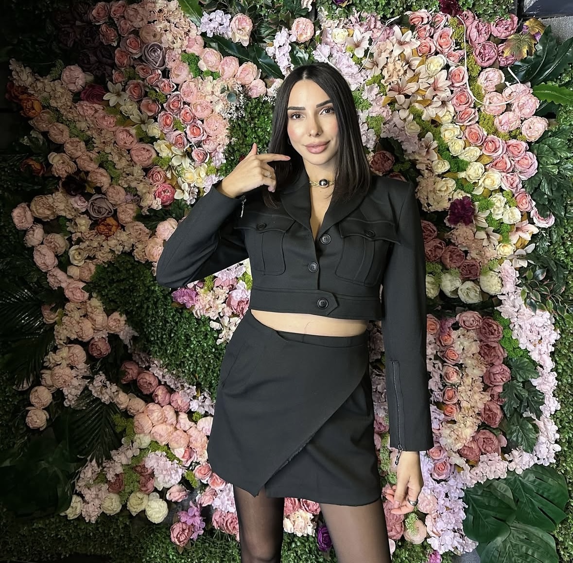 Siyah Asimetrik Etek & Crop Ceket Takım